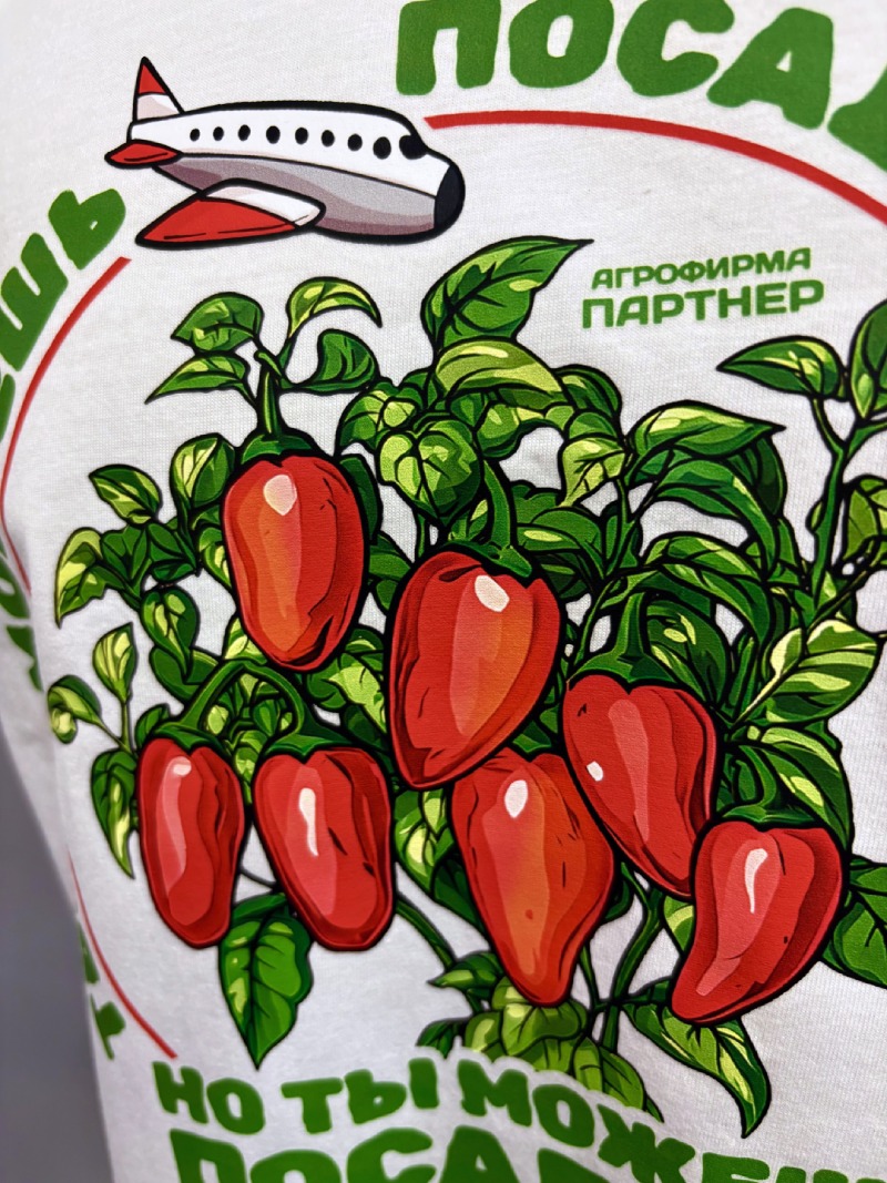 Способ нанесения: DTF печать в 2-х местах: яркий принт спереди на груди и надпись сзади на спине.
