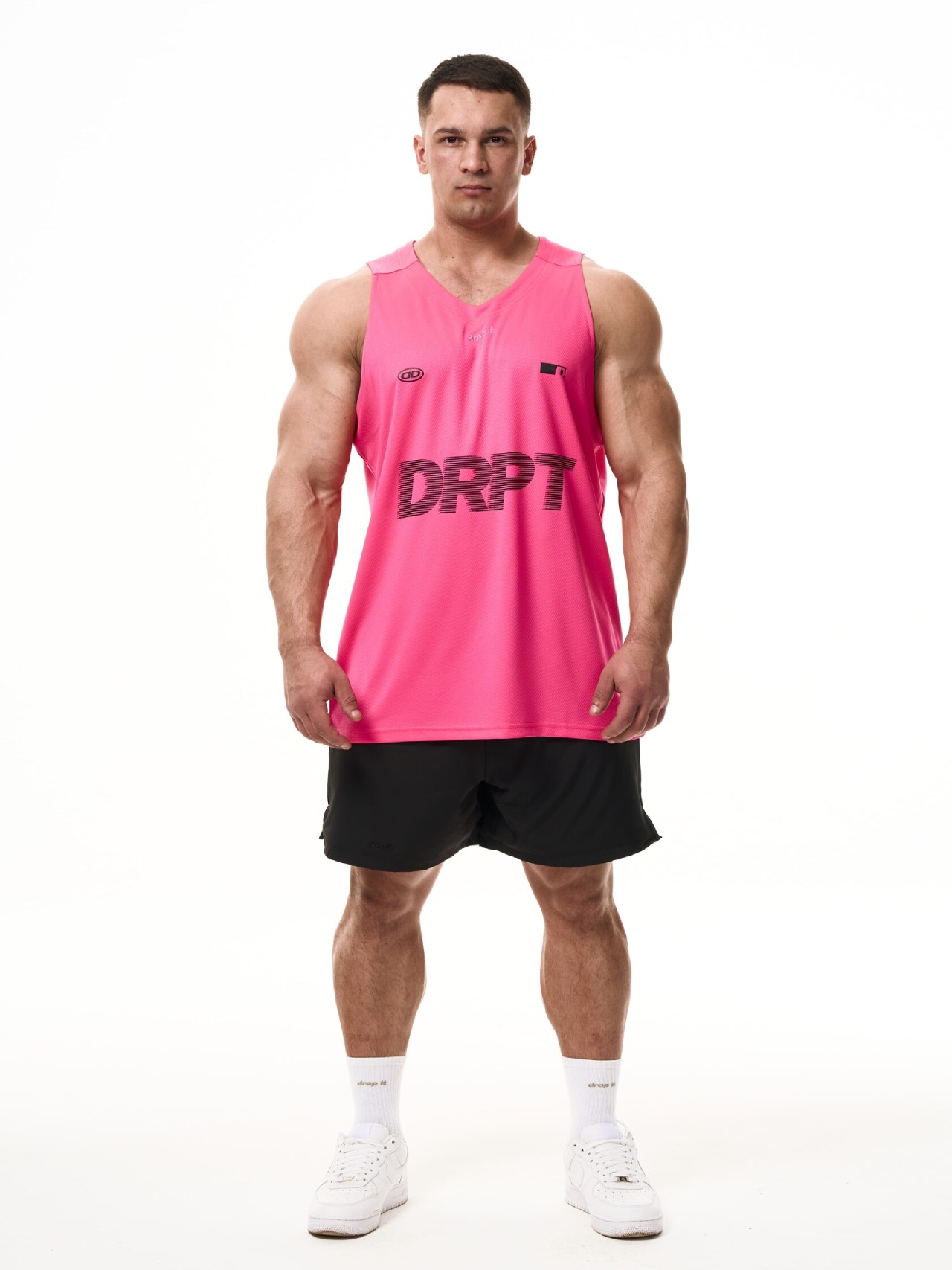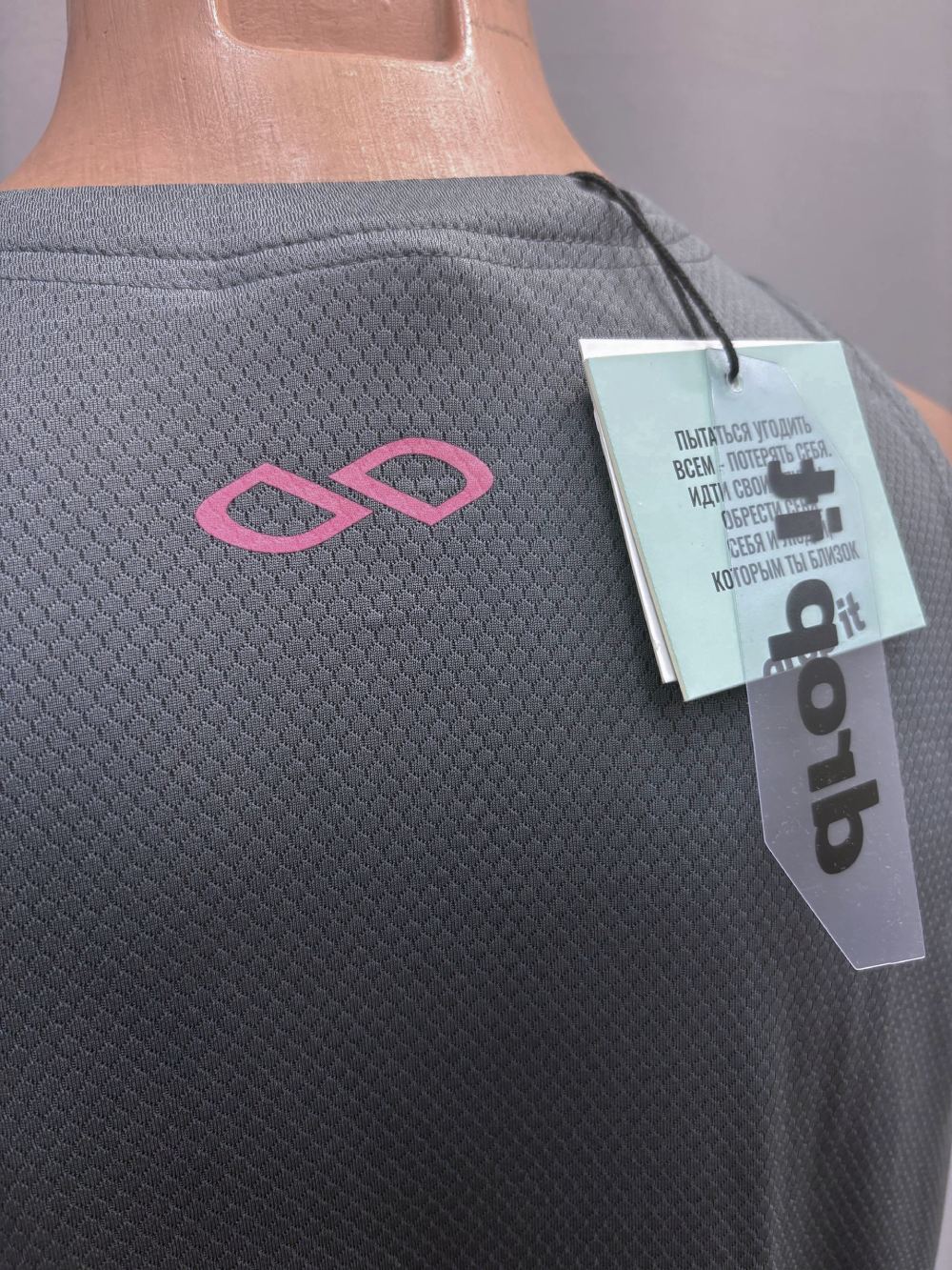 Изделия: 655 спортивных маек чёрного, розового, серого и зелёного цвета из дышащего материала.