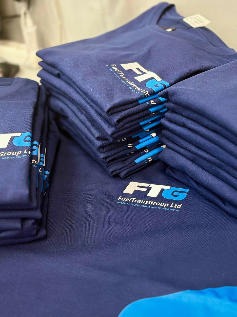 Изделия: 159 футболок разных синих цветов, предоставленных со стороны клиента.
