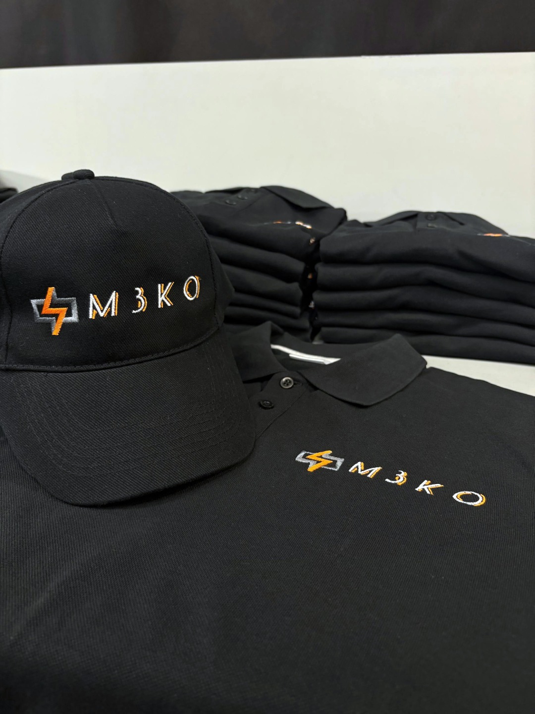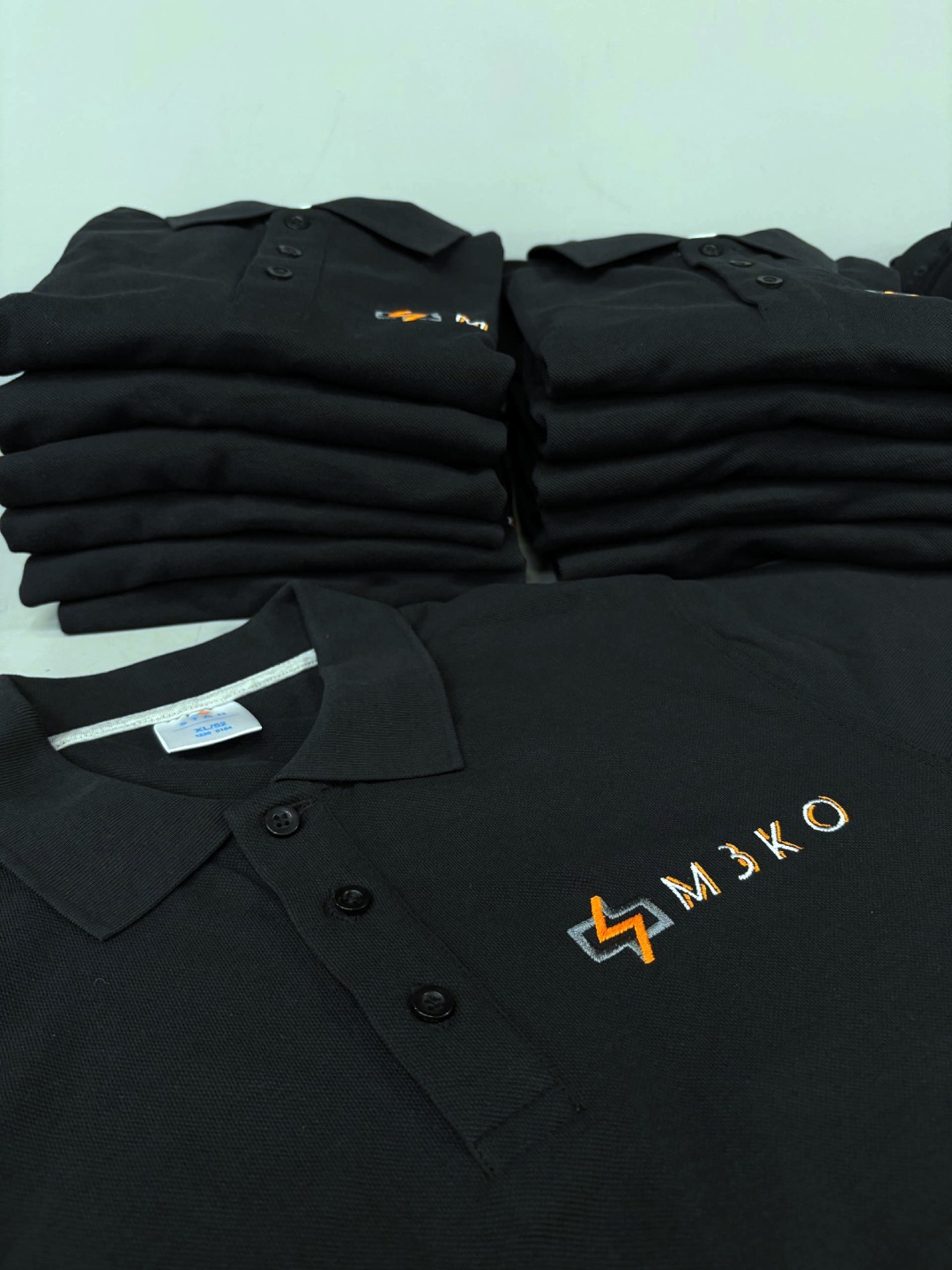 Изделия: 50 кепок и 50 футболок поло премиального качества чёрного цвета.
