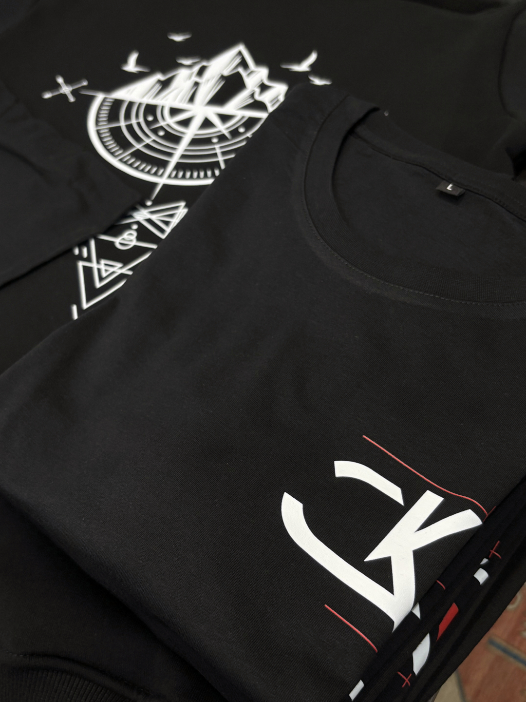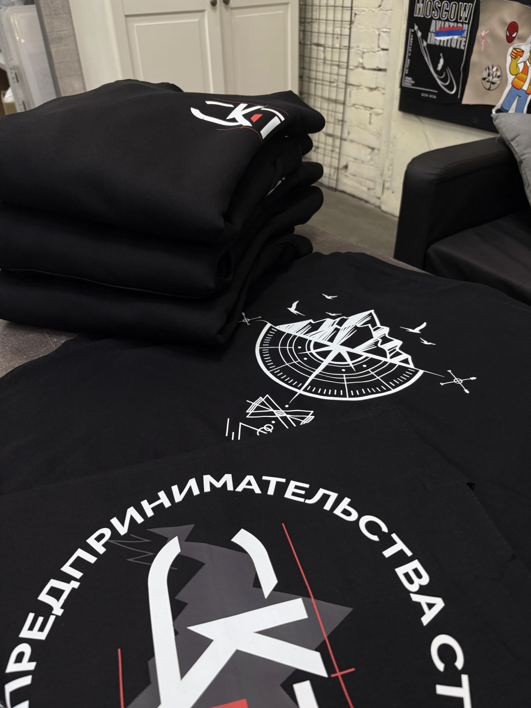 Изделия: 15 худи, 7 футболок и75 шоперов чёрного цвета.